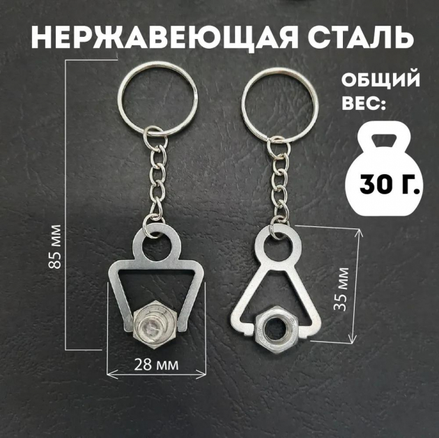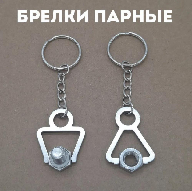 Уникальный набор их двух брелков, скручивающихся между собой болтиком и гаечкой. Брелки выполнены из нержавеющей стали, с использованием качественных метизов. Поверхность брелков гладкая блестящая, их приятно держать в руках. Брелок подходит в качестве игрушки антистресс, благодаря подвижным элементам. Аксессуар можно использовать с любой сумкой, рюкзаком или ключами. Брелки можно подарить на 23 февраля, на день рождения, а также в качестве корпоративного подарка.
