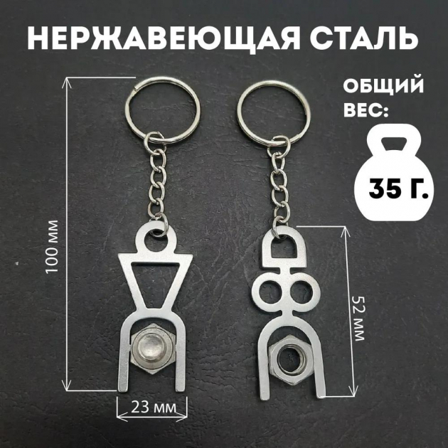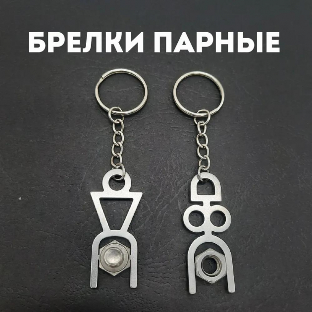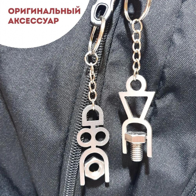 Уникальный набор их двух брелков, скручивающихся между собой болтиком и гаечкой. Брелки выполнены из нержавеющей стали, с использованием качественных метизов. Поверхность брелков гладкая блестящая, их приятно держать в руках. Брелок подходит в качестве игрушки антистресс, благодаря подвижным элементам. Аксессуар можно использовать с любой сумкой, рюкзаком или ключами. Брелки можно подарить на 23 февраля, на день рождения, а также в качестве корпоративного подарка.